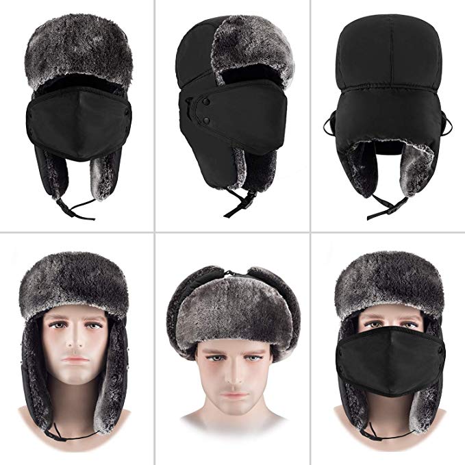 The removable face mask will keep your face protected from biting winds whether you work outdoors or enjoy winter sports. The windproof mask attaches to the hat with two snap buttons on either side,which can be removed easily and stow away when not in use. The ears and chin are highly sensitive to cold weather, and must be protected from wind and frost,and the Mysuntown Winter trooper helps to do just that.