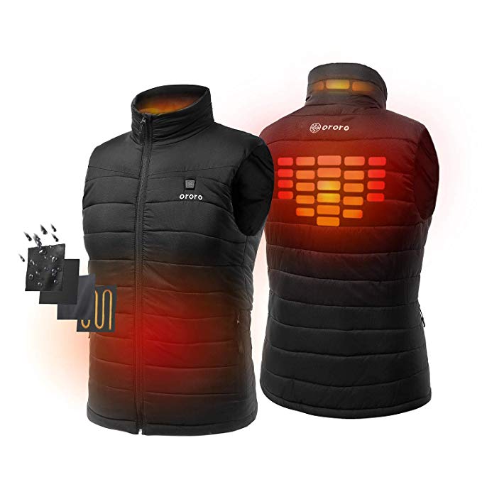 KEEP YOUR BODY AND HANDS WARM: 2019 redesigned heating system with 4 carbon fiber heating elements generating heat across collar, mid-back, as well as underneath two pockets for core-body warmth. 3 available heating settings can be adjusted with just a simple press of the button.