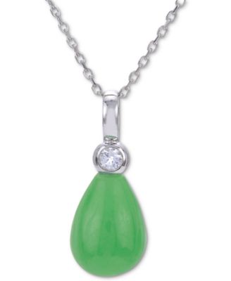 Sterling Silver Jade (25x35mm) and Diamond Accent Pendant Necklace