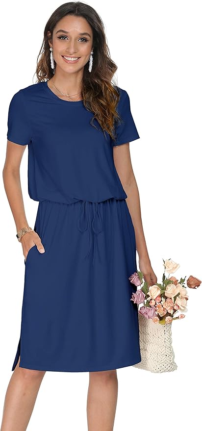 Smart and Free Waistline Design: Using elastic waist and removeable drawstring to adjust waistline position freely.Cute and modest mid length, long enough to cover knee, and the dress length can be adjusted through the smart waistline.Not just casual style, the work casual dress can be competent for more life occasions: church, travel, work, school, beach, picnic, etc.Design details: loose fitted tops, side pockets, hem slit.Small= size 4-6, Medium= size 8-10, Large= size 12-14, X-Large= size 16-18, for more size guide, please check "Product Description".