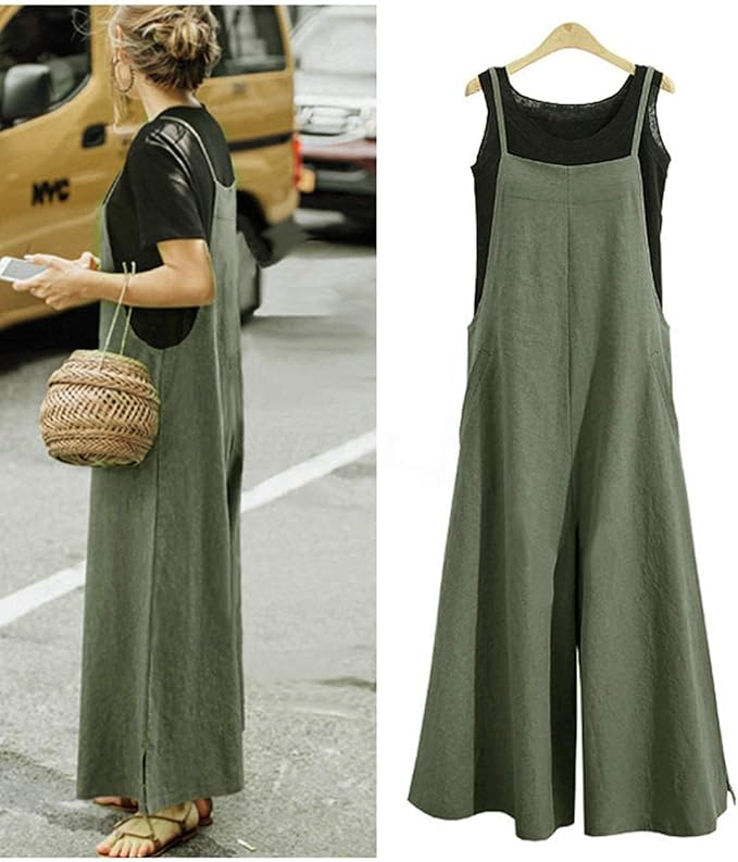 With 2 Inserting Pockets on the Front; Ankle-Length; Side Split on Both LegsAnkle-Length Cropped; Side Split Wide Leg; Loose Waist; Low Crotch; 2 Inserting Pockets on the Front; 2 Spaghetti StrapsOccasion: Summer Beach; Home Wear; Daily Wear; Holiday; Trip; Perfect Match with T-Shirts, Tops, Blouse and SneakersPlease refer to the Size Chart in the Product Description below or the 5th Image before orderingHand Wash Cold; Soft Machine Washing; Line Dry; Do not Soak; Classification of Washing; Iron at Low Temperature if Necessary