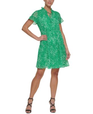 DKNY Flutter-Sleeve Tie-Waist V-Neck Dress