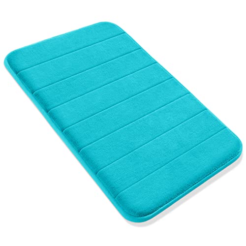 Yimobra Memory Foam Bath Mat Large Size 31.5 by 19.8 Inches, Soft and Comfortable, Super Water Absorption, Non-Slip, Thick, Machine Wash, Easier to Dry for Bathroom Floor Rug, Peacock Blue