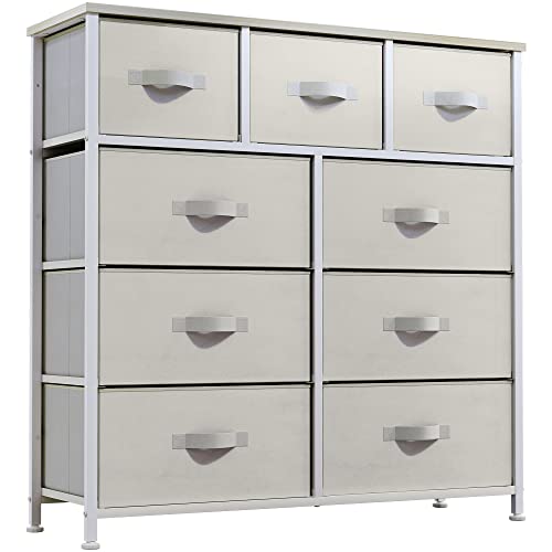 YITAHOME Dresser with 9 Drawers - Fabric Storage Tower, Organizer Unit for Living Room, Hallway, Closets & Nursery - Sturdy Steel Frame, Wooden Top & Easy Pull Fabric Bins (Cream White)