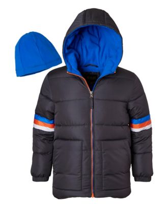 Big Boys Sleeve Stripe Puffer Jacket with Fleece Hat