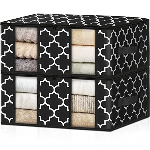 HomeHacks Storage Clothing Storage Bags, Storage Box Clothes Organizer with Clear Windows, Sturdy Handles Clothing Storage for Cloth, Toy, Bedding Storage, 2-Pack, Black