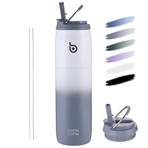 BOTTLE BOTTLE Stainless Steel Water Bottle with Straw and Lid, 32oz Vacuum Insulated Water Bottle Flask, Stay Cold for 24 Hrs, Hot for 12 Hrs, Leak-Proof Wide Mouth Sports water bottle, grey