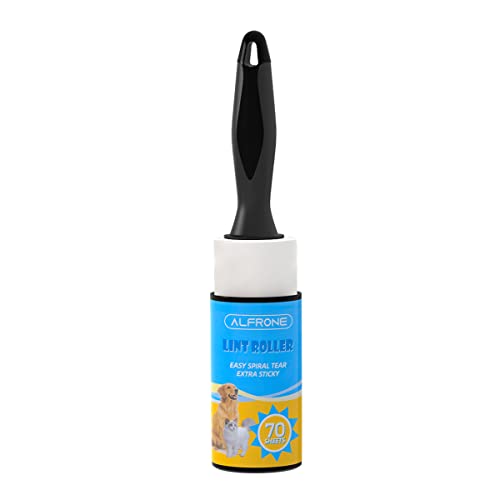 【 ALFRONE Lint Rollers 】ALFRONE extra sticky lint roller is a great household cleaning tool for pet hair,dust.Comes in 6 roller refills,2 lint roller handles and 2 covers.There are 420 total sheets and each lint roller holds 70 sheets. The quantity is enough for daily use and it is convenient to carry when traveling.【 Easy to Store】Tired of buying lint rollers that don't have a cover or are easy to store or difficult to remove. Say goodbye to those lint rollers that don't have lids. These hard plastic covers are great. 1. Easy to use, save time, the roll paper is no longer stuck at the bottom of the drawer. 2. Keep sticky even if it is not used for a long time.【 Easy to tear 】ALFRONE adopts side spiral tearing method, the edge part is reinforced, and it feels very easy to tear. (Please find the triangles (on both sides on the top of the lint roller) and hold one of them, then tear off)【 Sticky Paper 】ALFRONE lint roller refill increases the stickiness of the paper. So you can pick up a lot of pet hair with a single piece of paper. Our sheets are made of plain paper and won't harm your clothes, bedding, sofa...【 ALFRONE after Sale Service 】ALFRONE is committed to providing user-friendly lint rollers and good customer service, any questions, please let us know, we will try to help.