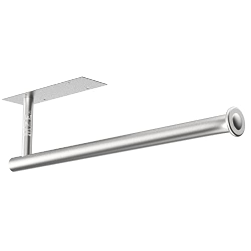 Premium Material: The hanging paper towel holder is made of premium SUS304 stainless steel, with a durable rustproof and anti-scratch surface. L-style designs are easy to replace the new paper roll, with super load-bearing and stickiness, it is not easy to fall off. Waterproof and rustproof, strong and not easy to deform.Mutil-Purpose: The paper towel holder fit most large rolls of paper towels in the market, and can be used to place towels, paper towel roll, plastic wrap, under cabinet paper towel holder. Installed under the cabinets and wall racks in the kitchen, bathroom, storage room, laundry room, etc.Space Saving: The self adhesive paper towel holder can be installed on the wall vertically or horizontally, Can help you clear the clutter on the counter, effectively saving space in cabinets, RVs, kitchens, sinks, bathrooms, pantries, garages, campers and more.Two Installation Methods: Drilling or Self adhesive paper towel holder. Remove the protective film of the adhesive tape and place the paper towel holder on the smooth, press firmly for a few seconds then wait for 24 hours. You can also drill holes in any surface for screw mounting, it will be more secure.Perfect Size: MZE under cabinet paper towel holder can fit most of the regular or mega paper towels on the market ,the paper towel bar length: 12.5 inch, height: 3.5 inch, dimensions of the plate : 5.7*1.8 inch.