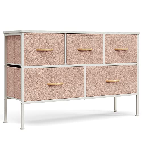 LINSY HOME Dresser for Bedroom with 5 Drawers, Fabric Long Dresser, Wide Chest of Drawers, Storage Organizer Unit for Closet, Living Room, Hallway, Nursery