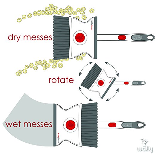- Better than any broom/dustpan, wallybroom also cleans up icky, wet messes like dropped eggs, yogurt, cereal, anything your family can throw at it.