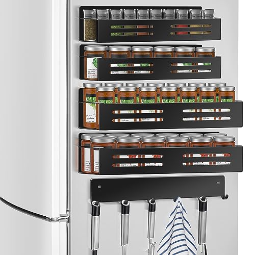 Magnetic Spice Racks for Refrigerator with Hooks Keep Your Kitchen Organized and Spices Easily Accessible with Moveable Fridge Magnetic Spice Shelves Magnetic Hooks Provides Extra Storage Space