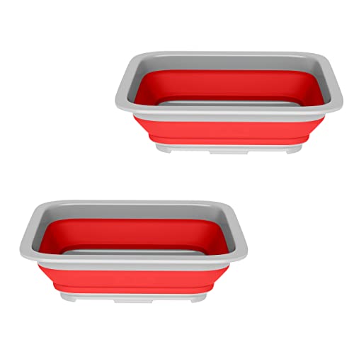 Set of 2 Multipurpose Wash Bins – 10-Liter Basins for Camping, Parties, or Cleaning – Collapsible Bucket Set by Wakeman (Red)
