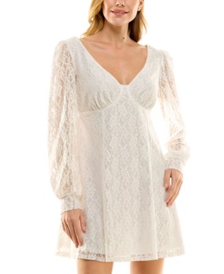 Women's Long-Sleeve Smocked-Neck Ruffle Hem Dress