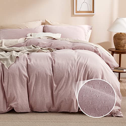 Bedsure 100% Washed Cotton Duvet Cover Set King Size - Jacquard Cotton Duvet Cover Set for All Seasons - 3 Pieces Decorative Cotton Duvet Cover Set with 2 Pillow Shams (Dusty Pink, King, 104