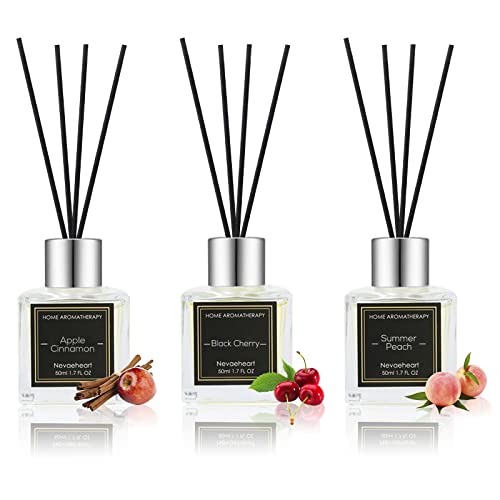 NEVAEHEART Reed Diffuser Set, Apple Cinnamon/Summer Peach/Black Cherry, 1.7OZ x 3 Packs Reed Diffuser, Oil Diffuser Sticks, Fragrance Diffuser with Gift Box