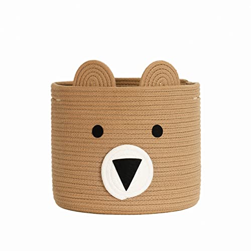 CherryNow Bear Basket, Cotton Rope Basket, Woven Laundry Hamper, Cute Storage Bin in Bedroom, Nursery & Living Room, 10'' (H) x 12'' (D), Brown
