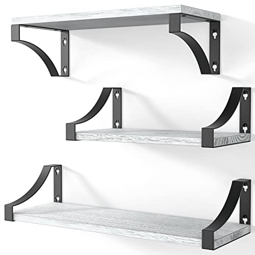 AMADA HOMEFURNISHING Floating Shelves Wall Mounted Set of 3, Rustic Wood Wall Shelves for Bedroom/Bathroom/Living Room/Kitchen/Laundry Room Storage & Decoration, White
