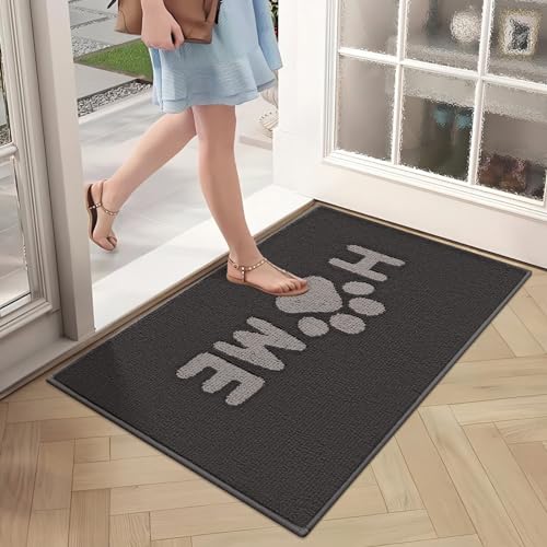 Beautiful Decor & Functional: “Home is where the heart is.”Our indoor door mat is specially designed for home welcome door mats, with a paw print pattern, cute and brightens up any entryway. Perfect for use as a front door mat, entryway rug, door mat indoor entrance, indoor door mats for entryway, entry rugs for inside house, indoor doormat, shoe mat, etc.Keep Your Floors Clean and Dry: Our premium door mat makes your life no longer messy. Keep your entryway clean and clutter-free with this microfiber entrance rug from AIZIBLISH - the ideal door mat essential to effectively catch moisture and dirt from muddy shoes or paws, especially for the rainy, snowy, or muddy weather. Enjoy your home every time!Soft, Non-Slip & Durable Doormat: Made of high-quality polyester microfiber, Our door mats indoor are durable, super absorbent, and comfortable to walk on. The strong non-slip rubber backing provides a good grip, so this front door rug can prevent falls and keep the doormat in place, perfect for both indoor and outdoor mat use, indoor entrance, doorway, kitchen, back door, patio, garage, laundry, or any high traffic areas, etc.Low-Profile & Easy Clean: Our door mat is only 0.4 inch thick, low-profile design and reinforced overlock edges so doors can sweep over easily, ideal for low clearing doors or entryways. When the entryway rug gets dirty, Just use the vacuum to clean it or shake it off. For a deeper clean, machine washable and dried. Our indoor door mat, won't fade or wear out and will remain like new even after repeated washing.Warm Tips: Since the doormat was folded up during transportation, it's normal to see there will be two creases on the entryway rug. Please lay it flat for 2 to 3 days and wait patiently for its recovery. or try placing a damp towel on the crease area and ironing it with an iron.