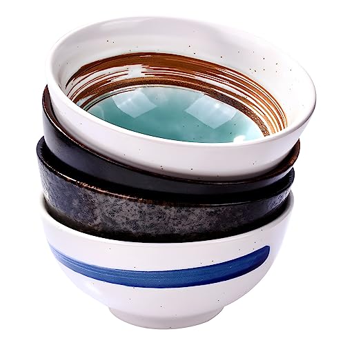 Whitenesser Japanese Rice Bowls 4 Pieces Ceramic Soup Bowl Asian Bowls SuShi Bowls 4.5 Inch Small Bowl