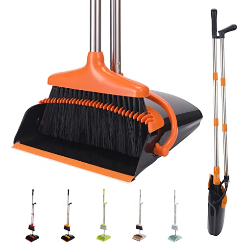✅[55.3" Long Handle Broom and Dustpan Set] Made of high-quality stainless steel poles with excellent performance in rust resistant, solid and light weight, which is easy to clean. Different people’s cleaning needs will be satisfied with the five extension poles which can be installed in different length. For example the children, adult and old man, especially for backache people, help you finish the sweeping jobs without bending.✅[Excellent Features] Large dustpan space, with heighten baffles on both sides, is designed for hold more rubbish, avoiding the rubbish falling out; Thoughtful broom teeth help you clean the hair of women or pet more quickly and conveniently, and does not get on your hands; Upgraded four layers bristles are made of PET material, more durable and stiff to clean heavier garbage✅[Easy Assembly] You just need screw the extension poles into the hole and quickly complete the installation. And the dustpan can be stored upright and easily put into a narrow space to make the room tidier and save space, if you want to hang it for storage, this broom can also meet your requirements. Our broom dustpan set is to bring great convenience to your life.✅[Wide Application] Ideal for home and office cleaning work, suitable for paper, dust, dirt, hair and pet hair sweeping. We also included a set of mini broom and dustpan set to help you clean the desktop rubbish, the cute dustpan is a great choice for children to clean up their DIY garage, it can be hung storage as well.✅[After-sale Service & Package]: Applied to environmentally friendly packaging, the box contains a broom and dustpan, a extra set of mini broom dustpan set. If you have any questions about our products and services, please feel free to contact us. We would be glad to help you solve any problems.