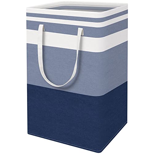 EpicTotes 1-Pack Large Laundry Basket, Collapsible Laundry Hamper, Freestanding Waterproof Laundry Bag, Tall Clothes Hamper-Extended&Reinforced Handles-for College Dorm, Family-Gradient Blue/75L