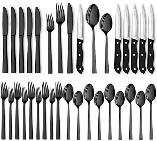 Utopia Kitchen 30 Piece Black Silverware Set, Flatware Set with Steak Knives, Stainless Steel Utensil Sets, Mirror Polished Cutlery Set for Home, Kitchen, Restaurant, Dishwasher Safe - Black