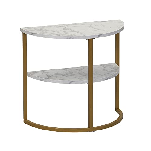 This modern coffee table showcases a sleek, rectangular tabletop in a black oak finish and a stylish gold brushed metal frameModern wood coffee table with metal frame; Display alone or pair with the half-moon accent table as an elegant nesting setAdd a subtle touch of contemporary glamour to any living space with this fashionably versatile coffee tableSustainable Particle Board, Metal39" W x 21" D x 19" H