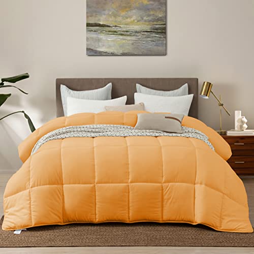 Dorrin Nessin Carrot Orange Queen Size Down Alternative Comforter All Season, Soft Down Alternative Comforter Blanket- Plush Fiberfill Duvet Insert - Box Stitched (Queen 90x90 Inches)