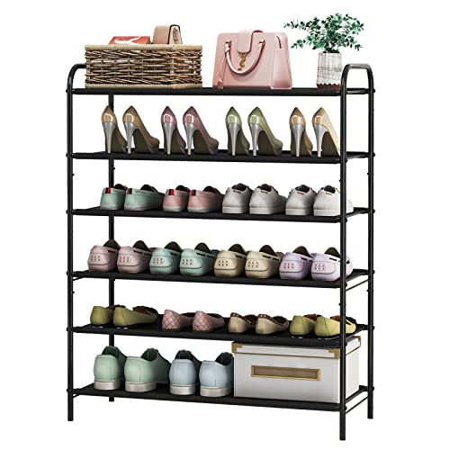 Wisdom Star 6 Tier Stackable Shoe Rack Organizer Storage, Adjustable Shoe Shelf for Closet Closet Hallway Bedroom Entryway, Black