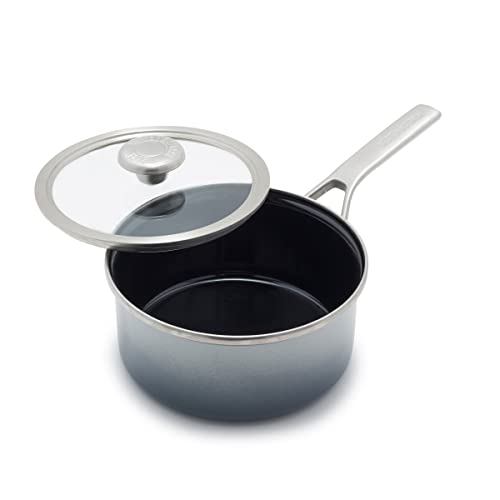 Merten & Storck European Crafted Steel Core Enameled Cookware, 2.1QT Saucepan Pot with Lid, Induction, PFAS & PTFE Free, Dishwasher Safe, Oven & Broiler Safe, Cloud Grey