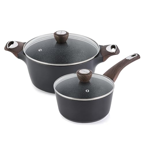 SENSARTE 2Pcs Nonstick Cookware Sets, 9.5 Inch & 11 Inch Nonstick Pots and Pans Set, Cooking Pan Set with Woodgrain Handle,Non Toxic Cookware for All Stove Tops, Healthy and Safe, Induction Compatible