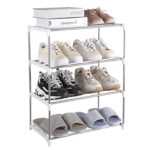 Fouews Small Shoe Rack, Narrow Stackable Shoe Shelf Organizer for Entryway, Doorway and Bedroom Closet (4-Tier, White)