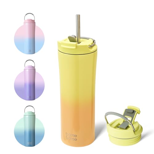 BOTTLE BOTTLE 18 oz Insulated Coffee Tumblers with Dual-use Lid and Straw Double Walled Iced Travel Coffee Mug for Woman and Man Stainless Steel Tumbler with Handle(Purple Gradient