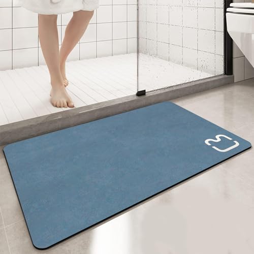 GHFSDO Diatomaceous Earth Bath mat Rubber Non-Slip Shower Mat Quick Dry Super Absorbent Bath Stone Mat Thin Bathroom Floor Mat Fit Under Door, in Front of Bathtub Shower Room, Machine Washable, Blue