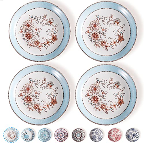 Artena Pasta Bowls Set Of 4, 20oz Porcelain Salad Bowls, 8 Inch Bowls For Kitchen, Colorful Dinner Plates, Serving Bowls For Entertaining, Shallow Bowl For Eating, Microwave, Oven Safe, Blue Garden