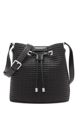 Calvin Klein Ash Bucket Crossbody, Black/Silver Pleated