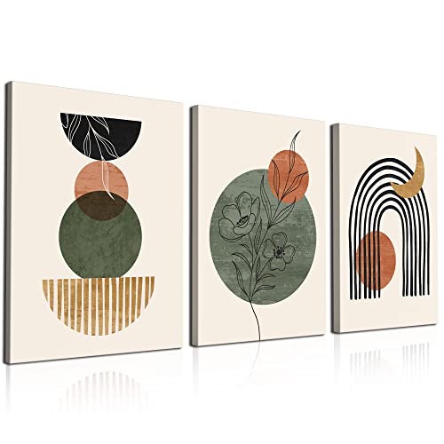 Gisipameis Boho Wall Art, Mid Century Modern Wall Art, Set of 3 Framed Canvas Wall Art Prints 12