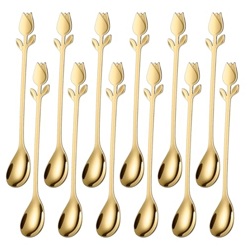 PREMIUM MATERIALS : Made of high-quality stainless steel, these spoons offer an attractive blend of durability and luxury at an affordable price point,these teaspoons are rust-resistant and built to last through daily use.ELEGANT APPEARANCE : The stylish tulip-shaped handle shape and mirror-polished finish give each spoon an attractive, sophisticated look perfect for serving.EASY TO CLEAN : The smooth polished surface resists scratches and fingerprints for a clean appearance, and is dishwasher safe for effortless maintenance.VERSATILE SET : Includes 6 teaspoons that are ideal for stirring coffee, tea, sugar, and more.MEASUREMENTS : Each spoon measures 6 inches long overall ,The compact size also makes them convenient for travel.VERSATILE UTENSIL : Sleek enough for coffee, tea or hot cocoa, yet sturdy enough for stirring or serving small desserts - a versatile addition to any utensil collection.