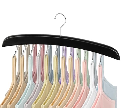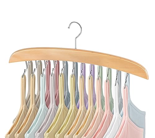 ✅【24 Foldable Hooks Large Capacity】The tank top hanger with 24 foldable hooks, 12 pieces per side. 180° rotating hooks can be unfolded to store and display at least 24 bras or cami. When not in use, simply fold the hooks inwards to create more space.✅【360°Swivel Hook for Easy Access】The top hook of bra hanger can be rotated 360°. Easy to see all the tank tops or bras and easy to hang or take off clothes. Choose bra hanger for closet to organize closet and help you quickly find what you need! Save your time~✅【Non-Slip & Wrinkle-free】The bra organizer for closet is designed with U-shaped stainless steel hooks, no sharp edges to tear your clothes, making the cami or bras firmly fixed on the tank top organizer without wrinkles, creases, effectively preventing the clothes from slipping.✅【Sturdy Materials】The space saver hangers are made of natural wood and polished stainless steel. Smooth surface design, beautifully crafted, lightweight and delicate, sturdy and lasting. The elegant color and right size design is suitable for a variety of closet rods.✅【Multifunctional Tank Top Organizer】The functional closet hanger organizers suitable for hanging tank tops, ties, bras, cami, swimsuits, belts, scarves, vests, and bathing suits, but also for hanging wrist straps, necklaces, and more. You can give it as a gift to your mothers, sisters, and friends to organize their closets neatly and easily.