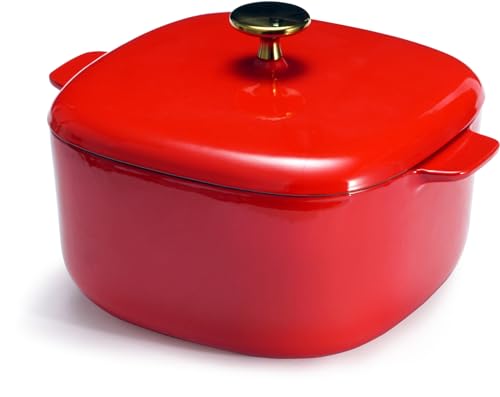 BEAUTIFUL APPEARANCE: The Urooloo 2722 enameled cast iron dutch oven has a minimalist style. The square golden ratio appearance shape looks more beautiful. The 3-ply porcelain enamel exterior is easy to clean and perfect for transferring directly from the kitchen to the dining table.SPACIOUS VOLUME: A square dutch oven can hold more food than a round dutch oven of the same diameter, so a square dutch oven can be used for more purposes, such as braising long ribs and baking square loaves of bread.ROBUST AND DURABLE: Heavy-duty cast iron with unmatched heat retention and uniform heating, Perfect for slow-cooking, simmering, braising, baking and more.MULTI-USE: Compatible with gas, electric, ceramic, ovens,and induction stovetops. bake or roast your favorite meals in the oven up to 500 Degree F.Dimensions: 10.8 x 8.7 x 7 inches, 10.35 pounds, serves 3-4 people