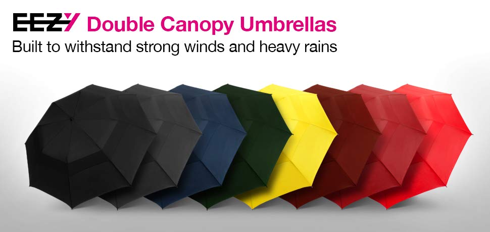 The core of the EEZ-Y umbrella is the double canopy construction! This means that the umbrella has a series of vents in the main canopy that allow the wind to pass, while the second canopy keeps the water out.