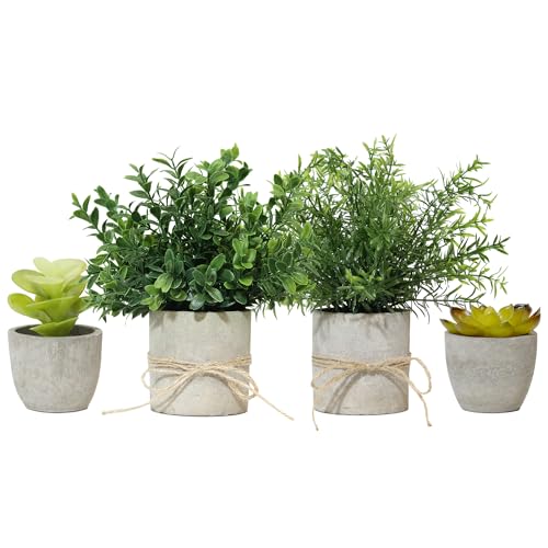 PENGYEE 4Pcs Small Fake Plants, Artificial Plants Indoor for Home Decor, Mine Fake Plant Set Greenery for Shelf Kitchen Bathroom Farmhouse Office Room Decor