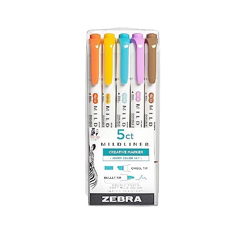 Zebra Pen Mildliner, Double Ended Highlighter, Broad and Fine Tips, Assorted Warm Colors, 5 Pack