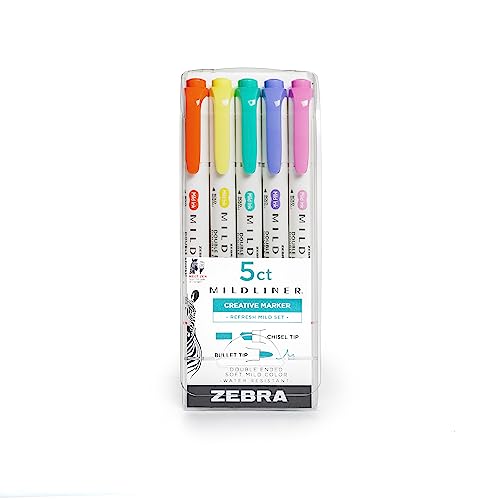 Zebra Pen Mildliner, Double Ended Highlighter, Broad and Fine Tips, Assorted Refresh Colors, 5-Count