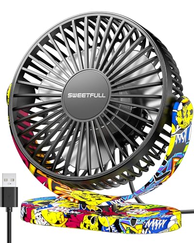 SWEETFULL Desk Fan USB Small Fan, 3 Speeds Portable Fan, 360° Rotate Personal Desktop Table Fan, Mini Fan Quiet Operation, for Home Office Car Outdoor Travel (Graffiti)