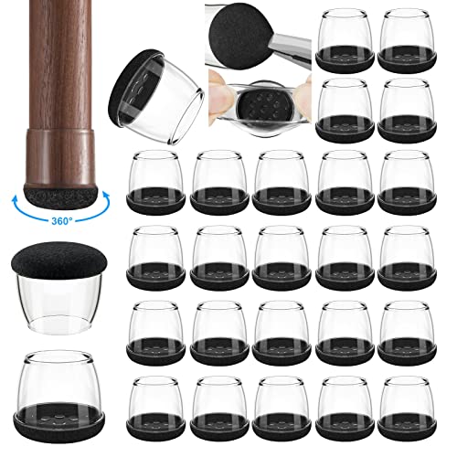 24 Pack Chair Leg Floor Protectors for Hardwood Floors - Black Round Furniture Pads, Thickened Silicone Furniture Sliders, Clear Furniture Caps Leg Covers -360° Felt Pads Wrapped(Large)